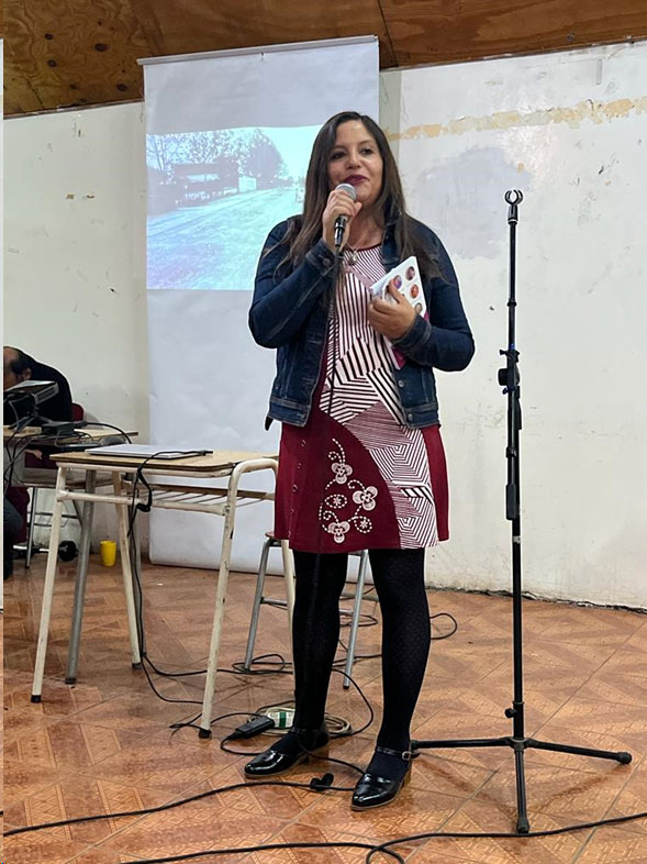 La directora ejecutiva de la Fundación Transforma con Igualdad Gloria Leal Suazo, participa del Conversatorio “Resistencias Cotidianas desde la sobrevivencia”, organizado por vecinas y vecinos por un “Buen Vivir”, el 11 de mayo de 2024, en el marco del Aniversario N° 53 de la población ex Sara Gajardo de la comuna de Cerro Navia.